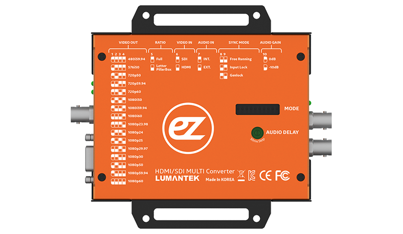 ez-MD+是LUMANTEK最新發表的多功能轉換器,HD-SDI與HDMI雙向交叉轉換,包含平衡式聲音崁入(XLR)與平衡式聲音分離(XLR),聲音延遲,升降頻,同步鎖定功能。