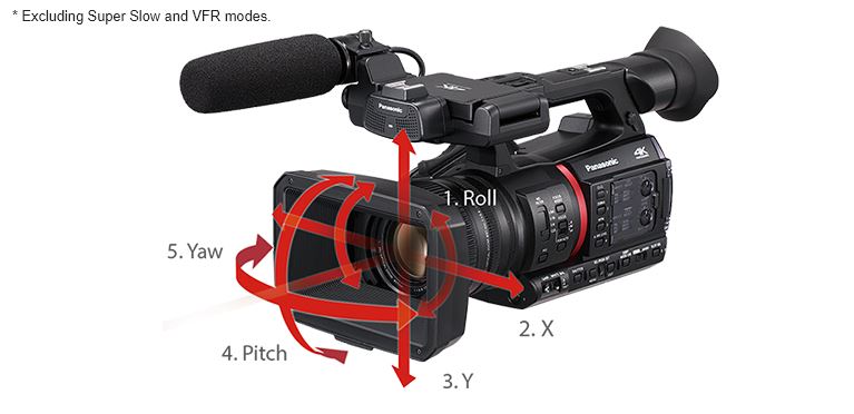 | AG-CX350內建混合圖像穩定器,結合了光學和電子相機抖動補償功能。 它可以在包括UHD在內的所有模式中修正五個軸向的相機抖動,在低角度拍攝,高角度拍攝和所有其 他不穩定條件下提供強大的相機抖動補償功率。 有三種模式可供選擇:NORMAL(標準),STABLE(固定幀拍攝有效)和PAN / TILT(平移和傾斜有效)。 |