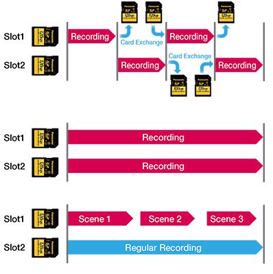 兩個SD存儲卡插槽可以使用SDXC / SDHC / microP2卡。