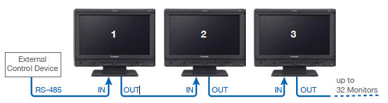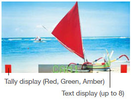 | 最高可以串接至32台並定義ID透過TSL指令顯示ID(最多8個數字)及TALLY並支持PANASONIC獨有的指令(相當於RS-232) | ||